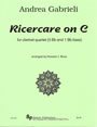 RICERCARE ON Cby Andrea Gabriel (1510-1586) arranged by Howard J. Buss for 4 clarinets (3 Bb and 1 Bb bass or clarinet choir. This late Renaissance work is written in a stirring imitative style. Particularly interesting are the meter changes involving metric modulations, a trait found in much of the dance music of the day. (2’30”) Grade III.